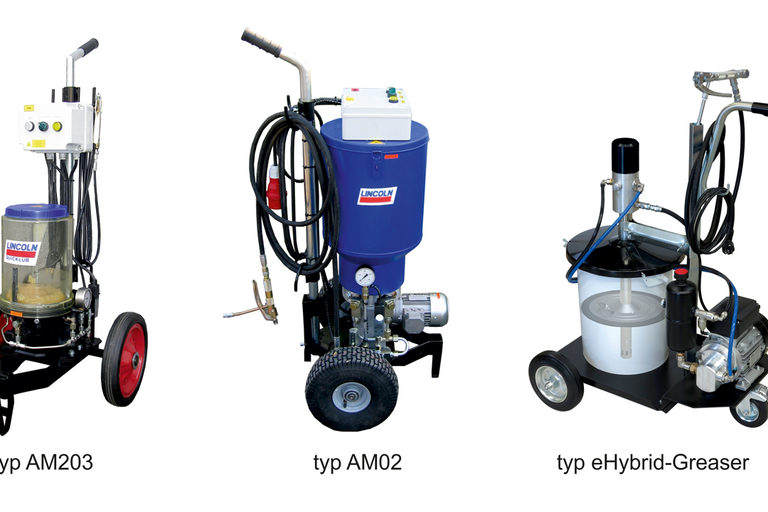 Mobil elektromos zsírzóberendezések,230 VAC és 380-420 VAC feszültséggel, különböző tartálymérettel és szállítási teljesítménnyel