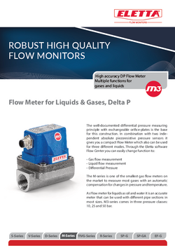 Az Eletta áramlásmérők közül a legkompaktabb kivitel az M3-sorozat, mely három különböző módon használható: gáz áramlásmérésre, folyadék áramlásmérésre vagy nyomáskülönbség mérésre. Az M3-sorozat az egyik legkisebb gázáramlásmérő a piacon, amely a legtöbb gáz mérésére alkalmas, automatikus nyomás- és hőmérséklet-változás-kompenzációval (tömegáram mérés). Folyadékok – víz és olaj – áramlásmérése esetén pontos mérést biztosít, amely a legtöbb csőmérethez alkalmazható a különböző csatlakozási lehetőségeknek köszönhetően. Az M3-as sorozat három nyomásosztályan kapható: 10, 25 és 50 bar.