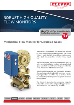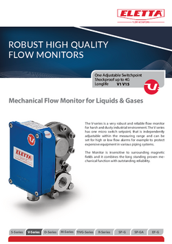Az Eletta V-sorozata egy nagyon robosztus és megbízható áramlás kapcsoló, mely zord és poros ipari környezetben is alkalmazható. A műszer érzéketlen a környező mágneses mezőkre, és a régóta bevált mechanikai megoldásokat ötvözi a kiemelkedő megbízhatósággal.