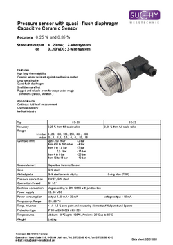 | SD-50 | Frontmembrános | Kerámia | G1 1/2" külső menet | 0,5% | Standard: 4…20 mA Opciók: 0…20 mA, 0…5 V, 0…10 V | 0..+1 ... 0..+10 bar, -1..0 ... -1..+9 bar, -40..0 ... 0..+600 mbar | Gázok és folyadékok |